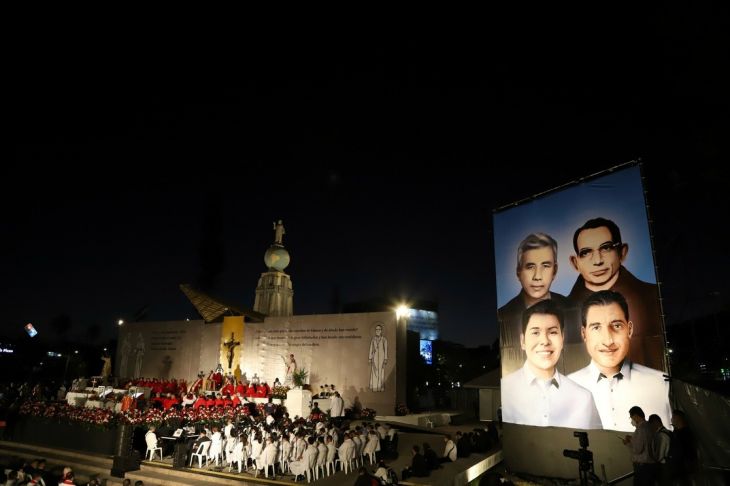 El acto se celebró en un templete con techo de palmas, como símbolo de sencillez, en la plaza Divino Salvador del Mundo y acudieron unos seis mil fieles, incluidos sacerdotes y religiosas.