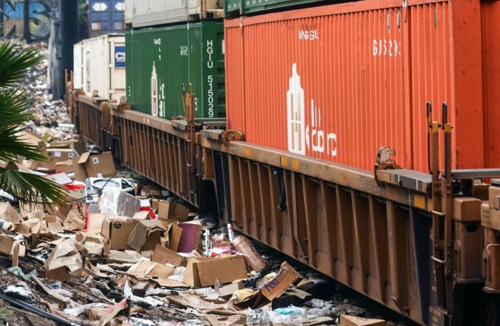 Los ladrones aprovechan que los largos convoyes ferroviarios están inmovilizados en las vías para subir a los contenedores de mercancías y romper los candados. Luego roban lo que quieren y descartan lo que no, generando un impresionante revoltijo de mercancías.