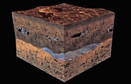 Los nuevos análisis, hechos por el Instituto de Investigación Sudoeste (SwRi), avalan la probabilidad de que haya agua salada debajo de la capa de hielo. Mediciones en laboratorio de las propiedades de las mezclas de hielo y salmuera a temperaturas de menos 100 grados Celsius, realizadas por el geofísico David Stillman, respaldan los reflejos extrañamente brillantes detectados por Marsis.