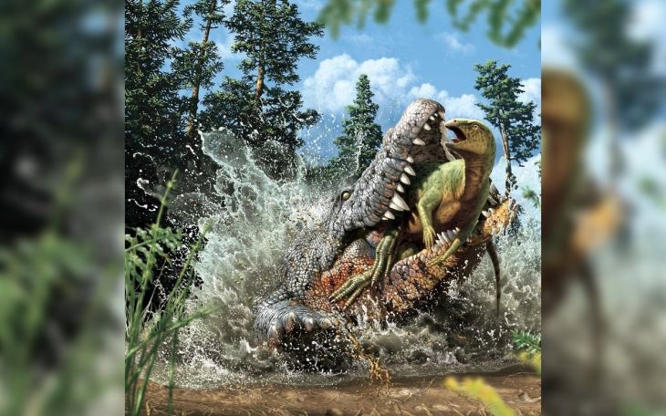 Paleontólogos que trabajaban en una zona de Queensland, Australia, hallaron el fósil de una especie de cocodrilo nunca antes descubierta, el cual tenía restos de un pequeño dinosaurio en su estómago.
