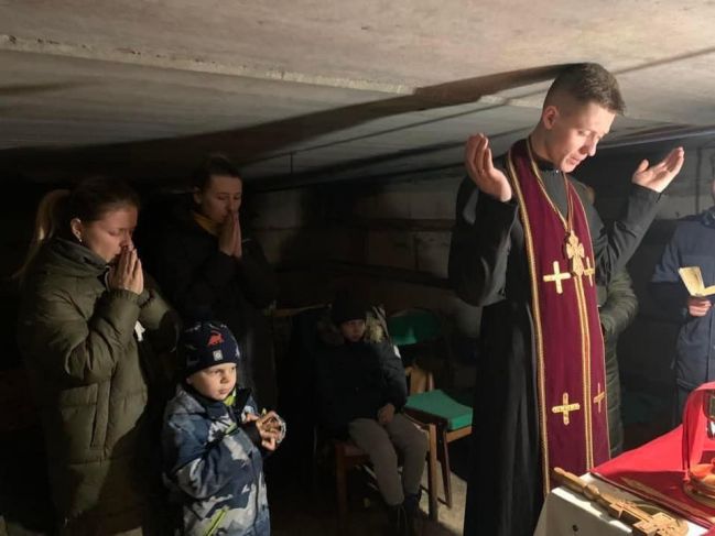 El padre dijo que si los residentes de Kiev no pueden ir a la iglesia, los sacerdotes descenderán al subsuelo para celebrar la misa.