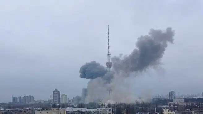 El parlamento ucraniano, Verkhovna Rada, publicó una foto de nubes de humo alrededor de la torre de televisión, que se encuentra a un par de millas del centro de Kiev y a pocos pasos de numerosos edificios de apartamentos. El alcalde de Kiev, Vitali Klitschko, dijo que una subestación eléctrica que alimenta la torre y una sala de control en la torre resultaron dañadas por el golpe.