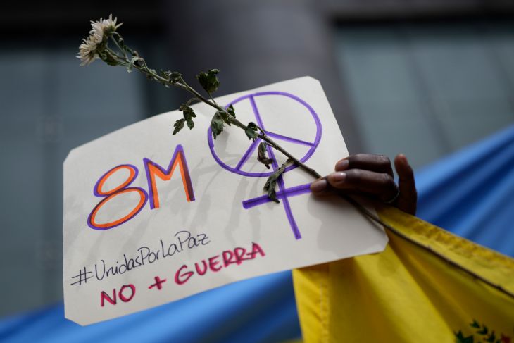 En Madrid, donde estas manifestaciones suelen ser multitudinarias, miles de personas convirtieron el centro de la capital española en un mar morado, el color del feminismo, con pancartas que pedían la igualdad y contra la violencia machista, pero también con frase que decían "Stop Putin" o "No a la guerra".