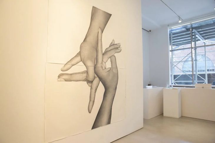 Una veintena de dibujos realistas de manos, con la solemnidad de carboncillo negro sobre papel blanco y la majestuosidad de su gran dimensión, de unos tres metros de alto por tres de ancho, destacan sobre las paredes desnudas de la galería Mitchell-Innes & Nash, incrustada entre escaparates en el barrio de Chelsea.