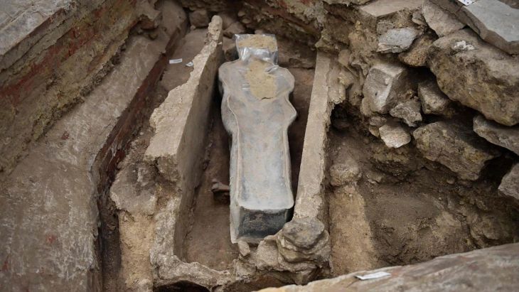 Los arqueólogos dijeron que el sarcófago de plomo probablemente pertenecía a un alto dignatario y que podría datar del siglo XIV, lo que, de confirmarse, lo convertiría en un hallazgo espectacular.