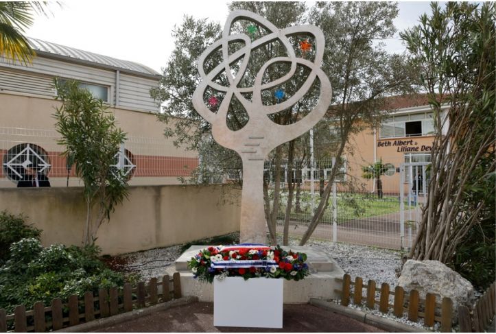 El jefe de Estado francés y su par israelí colocaron una corona de flores en el patio de la escuela Ohr Torah, al pie del "Árbol de la Vida", monumento a las víctimas.