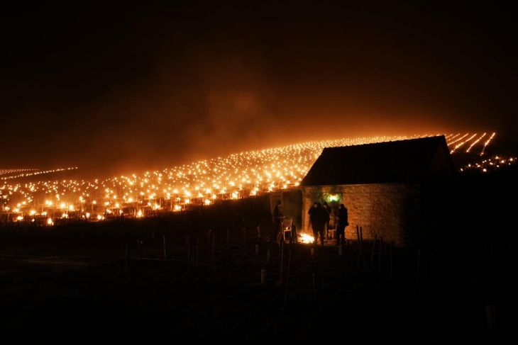 Viticultores franceses encendían velas para descongelar sus viñedos y salvarlos de una helada tardía tras una época cálida, un cambio de temperaturas que amenazaba las cosechas en varios países.