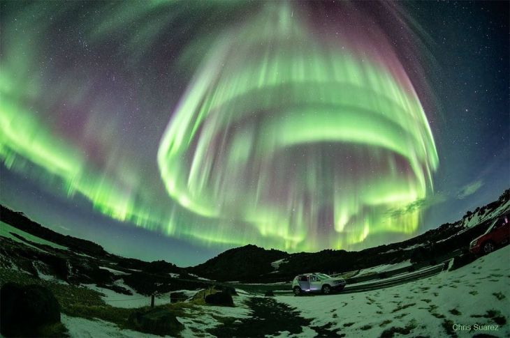 Christophe Suarez, fotógrafo meteorológico, capturó la imagen de una aurora boreal muy especial en el cielo de Islandia, la cual fue reconocida por la NASA como foto astronómica del día.