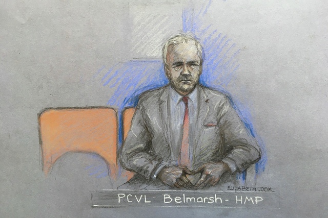 Vestido con chaqueta y corbata, el australiano apareció por videoconferencia desde la cárcel londinense de Belmash.