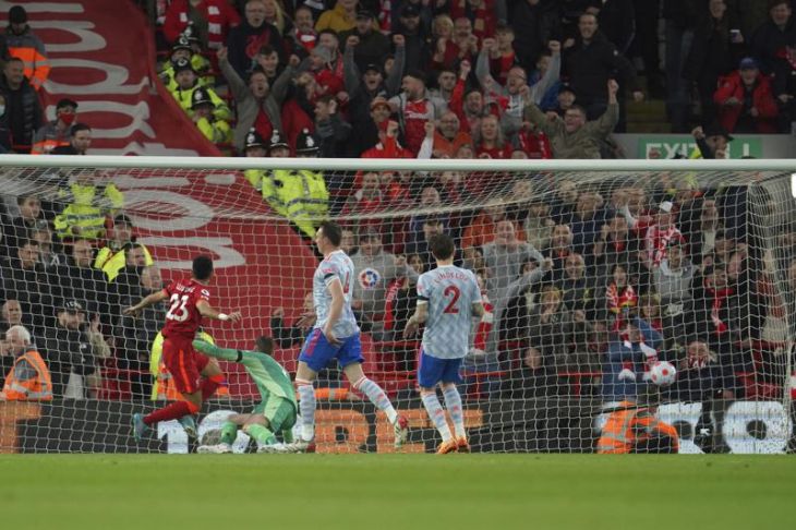Un gol madrugador de Luis Díaz encaminó ayer a Liverpool a una victoria de 4-0 sobre Manchester United y la cima de la Liga Premier de Inglaterra.