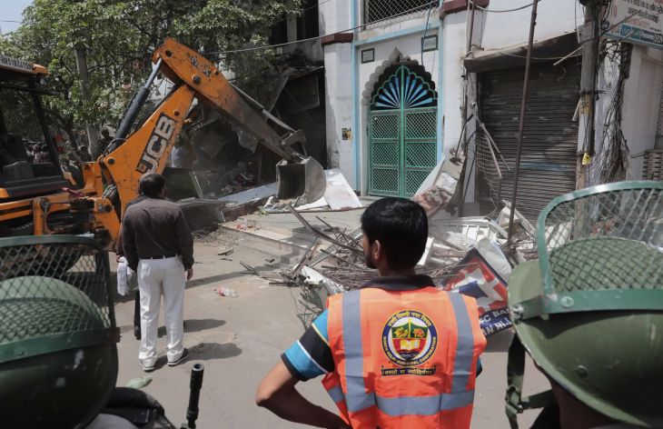Las autoridades municipales de Nueva Delhi demolieron este miércoles decenas de tiendas y estructuras en un norteño barrio de la capital, como respuesta a un nuevo brote de violencia interreligiosa el pasado fin de semana mientras se celebraba un festival hindú.