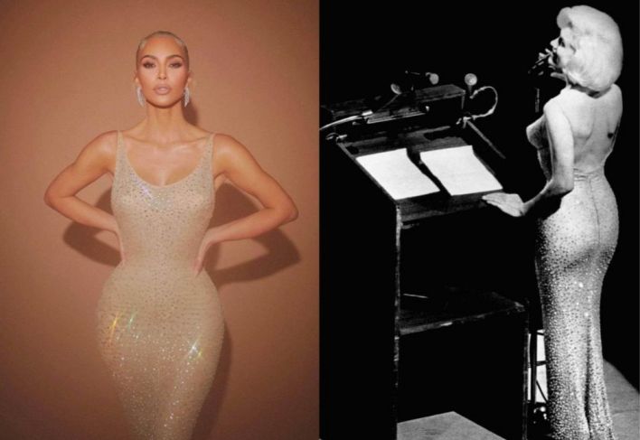 Kim Kardashian cerró la alfombra roja de la Met Gala el lunes con uno de los vestidos más icónicos de Marilyn Monroe, un corpiño con cuentas doradas que Monroe usó cuando cantó sensualmente el feliz cumpleaños al presidente John F. Kennedy hace 60 años.
