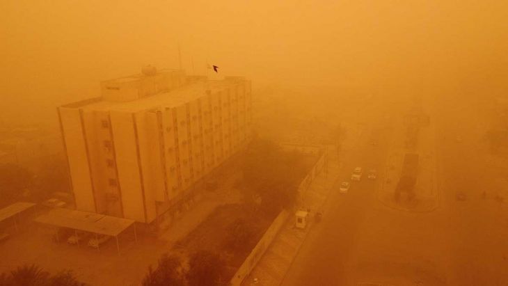 Los habitantes de siete provincias iraquíes, entre ellas la capital Bagdad y la región semidesértica de Al-Anbar, en el oeste, se vieron cubiertas por una espesa nube anaranjada, con la arena infiltrándose en las casas.