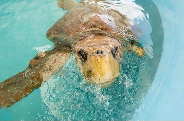 El personal médico del centro de salud animal logró estabilizar el organismo de la tortuga en un tanque especial para tratamiento con una alimentación a base de "líquidos, vitaminas y alimentos que incluían calamares y cangrejos".