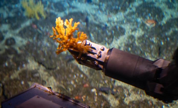 Las inmersiones en los dos montes más someros detectados durante la expedición revelaron la abundancia de un coral blando amarillo, que se colectó y se analizará para determinar si se trata de una especie nueva.