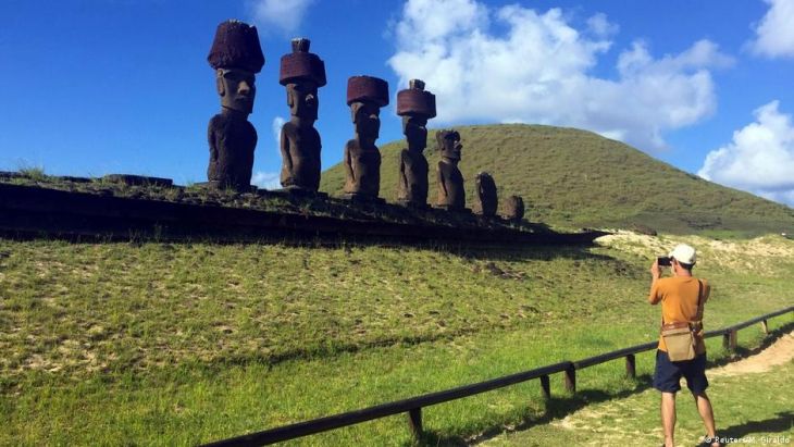 La polinesia Isla de Pascua, a 3 mil 700 km al oeste de la costa chilena, en el océano Pacífico, es famosa por sus icónicos moais -estatuas de piedra talladas con forma humana-.