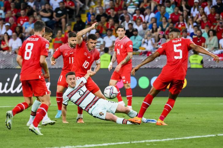 Un gol después de 57 segundos del delantero Haris Seferović fue suficiente para Suiza al imponerse ayer 1-0 a Portugal en Ginebra, a pesar de la presión tardía del equipo portugués, que incluyó dos oportunidades de gol del capitán de 39 años, Pepe, jugando como centro delantero de emergencia. El desliz de Portugal, tras darle oportunidad a Cristiano de ausentarse del último partido de larga temporada, le permitió a España tomar el liderato del sector dos, luego de una victoria de 2-0 sobre la República Checa en la Liga A.