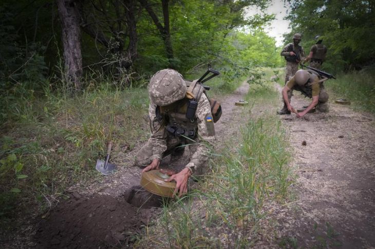 Se siguen instalando minas en los campos de batalla, al este y el sur del país, donde Rusia concentró sus ataques tras retirarse de Kiev y del norte.