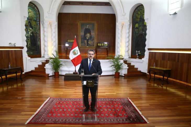 Merino tomó el poder luego que el Parlamento destituyó el 9 de noviembre de 2020 a su antecesor Martín Vizcarra (2018-2020) tras acusarlo de forma rápida de recibir una coima de hace una década.