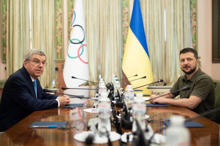 Luego de encontrarse con atletas ucranios, el jefe del COI se reunió con el presidente Volodymir Zelensky.