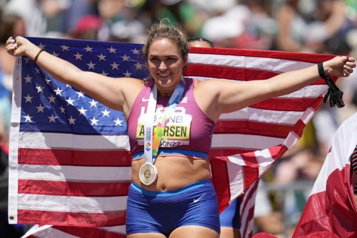 Andersen, de 26 años y originaria de California, subió a lo más alto del podio en el Hayward Stadium de Eugene, Oregon. Se colocó como líder luego del primer lanzamiento, pero fue perdiendo posiciones hasta una ejecución descomunal de 78,96 metros en su séptimo intento. Unos minutos antes de que los velocistas barrieran en los 100 metros, Chase Ealey se convirtió en la primera estadunidense en coronarse dentro de un mundial en el lanzamiento de bala.