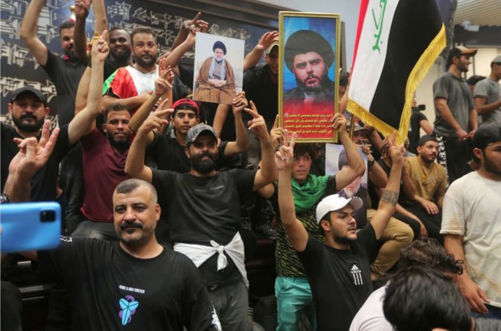Los manifestantes reunidos por al-Sadr y su Movimiento Sadrista derribaron las barreras de hormigón y entraron en la Zona Verde, que alberga los departamentos gubernamentales y las misiones extranjeras, antes de irrumpir en el parlamento.