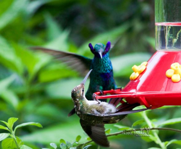 Los bebederos se llenan de veloces aleteos azulados, violeta, verde, naranja, cobrizos, fucsia, rojizos... Sus tonalidades varían según la luz que reciben.