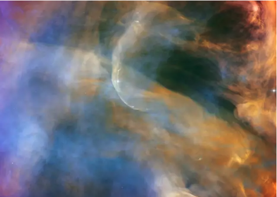 El Telescopio Espacial Hubble de la NASA/ESA captura un paisaje de nubes celestiales que corresponde a la colorida región de la Nebulosa de Orión que rodea al objeto Herbig-Haro HH 505.