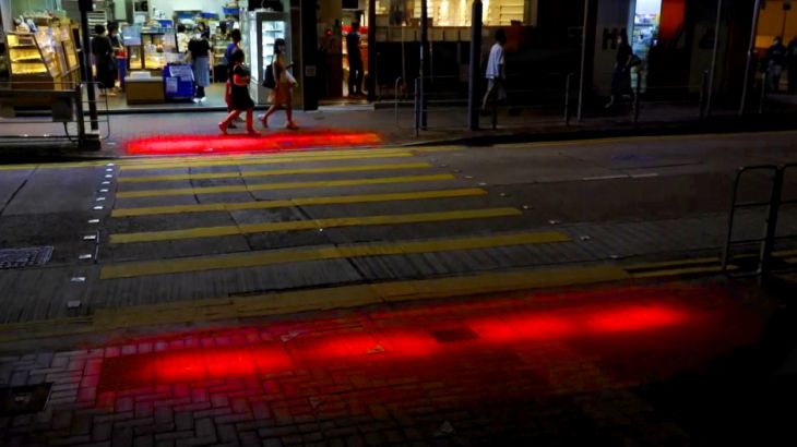 Hong Kong ha implementado un sistema de advertencia con luces rojas y verdes que iluminan directamente a los peatones para evitar que crucen las calles cuando el tráfico está en marcha.