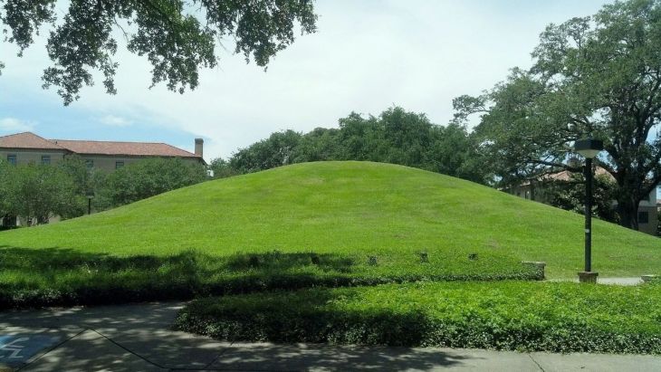 Los montículos, de unos seis metros de altura, se encuentran en el extremo norte del campus de la Universidad Estatal de Luisiana.