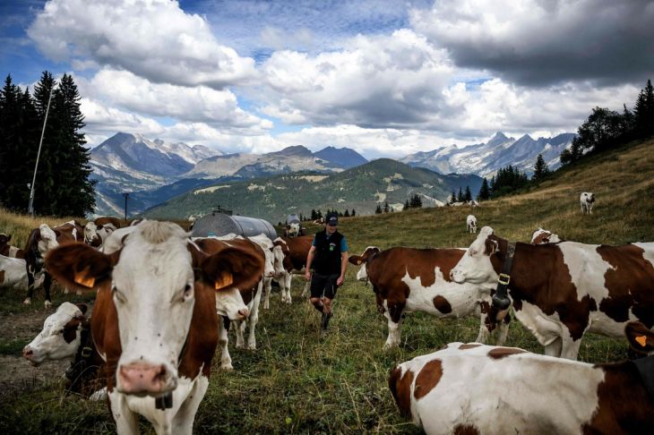 El calor y la sequía no han perdonado los majestuosos pastos de los Alpes franceses, donde a las vacas les cuesta encontrar suficiente hierba para producir la leche con la que se fabrican el reblochon y otros preciados quesos.