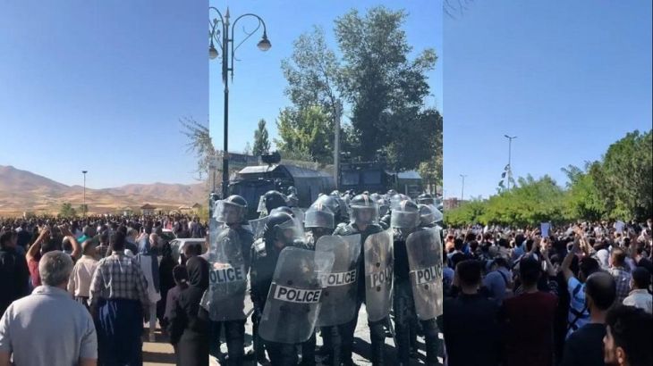 Un video publicado en Twitter por Hengaw mostraba a los manifestantes arrojando piedras mientras se escuchaba a un hombre decir "hay una guerra en Divandarreh" y acusar a la policía de atacar.