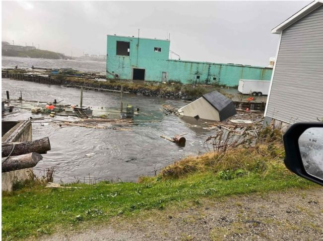 Un fuerte oleaje castigaba Port Aux Basques y estructuras enteras fueron arrastradas al mar.