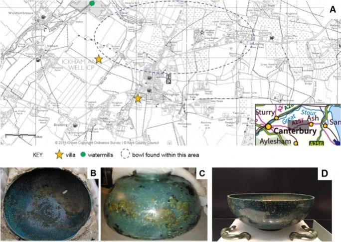 El cuenco romano fabricado con una aleación de cobre, se encontró en 2016 en una granja de Kent (Reino Unido), un lugar que se sabía que había sido utilizado para la agricultura desde al menos 1936.