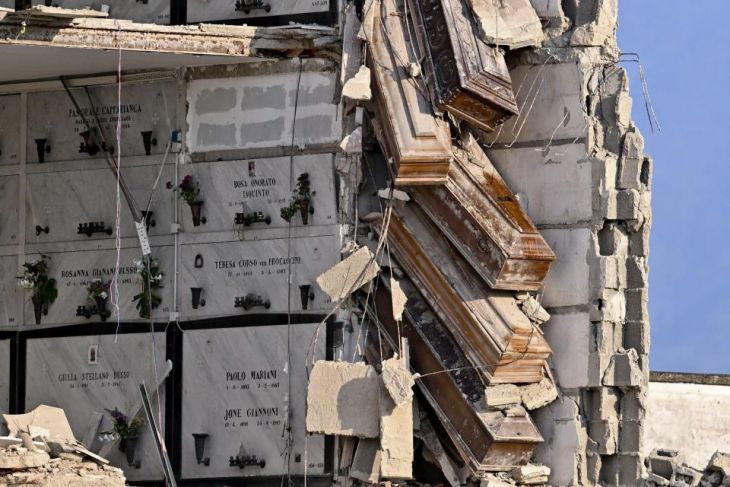 El derrumbe de un columbario de cuatro plantas con cientos de nichos en un cementerio de la ciudad italiana de Nápoles dejó al descubierto numerosos ataúdes, algunos de ellos colgando en las alturas, y obligó a cerrar toda la zona.