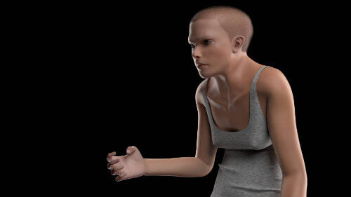 “El vínculo entre la tecnología y la postura ahora está bien establecido, y es por eso que la espalda y el cuello de Mindy están inclinados hacia su pecho”, describe la empresa.