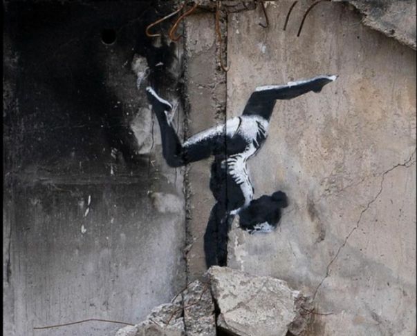 El famoso artista callejero británico Banksy reveló un nuevo graffiti pintado en un edificio bombardeado de la ciudad Borodianka, en las afueras de la capital ucraniana.