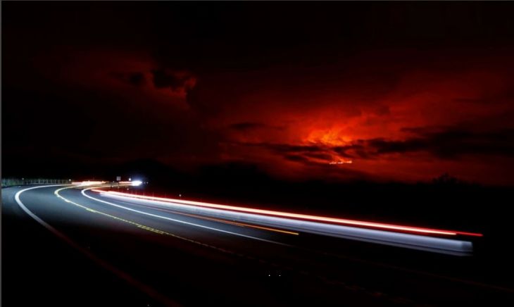 La lava que baja lentamente por la pendiente se encuentra a pocas millas de la carretera, que cruza por antiguos flujos de lava. Conocida como Saddle Road, la carretera divide la isla en dos y conecta las ciudades de Hilo y Kailua-Kona. En caso de que se torne intransitable, la alternativa es una ruta costera más larga, agregando varias horas de viaje.