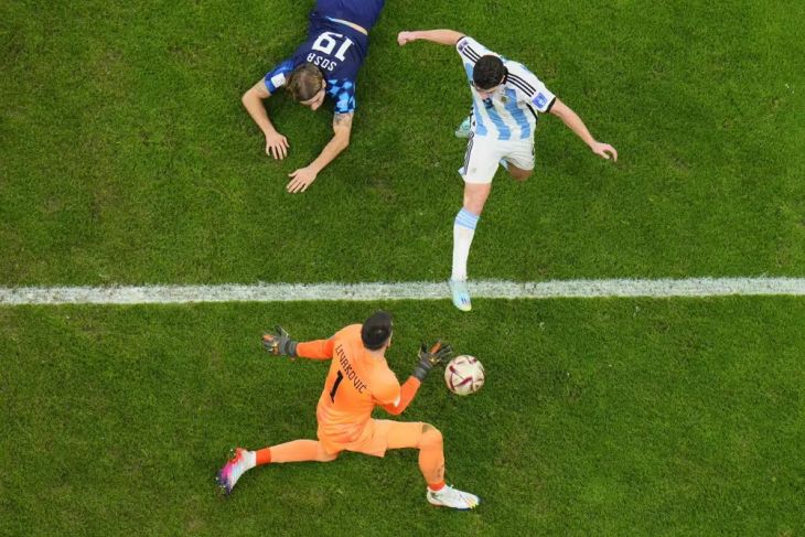 Hasta que Álvarez revolucionó el choque, Croacia había ejercido la iniciativa en el juego mediante las pulsaciones administradas por el circuito de volantes liderado por Luka Modric. El ataque de Argentina tardó en carburar.