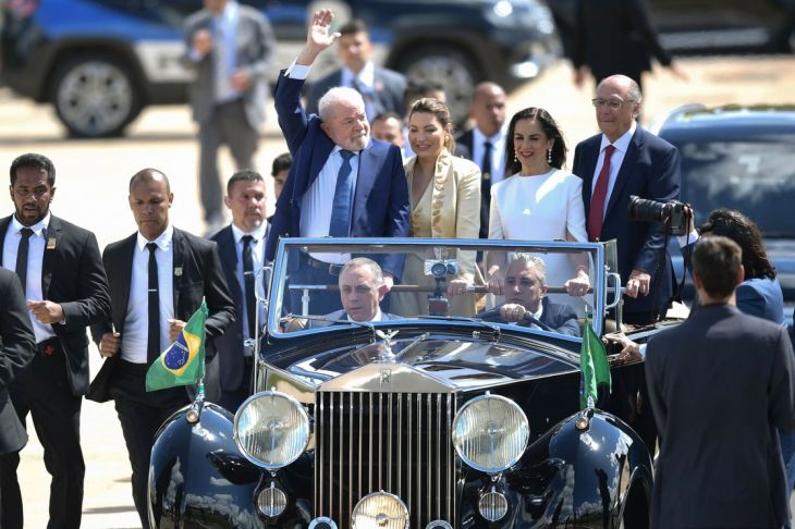 Al Congreso, Lula llegó con el tradicional Rolls Royce negro descapotable junto a la primera dama "Janja", ante los vítores de sus seguidores, algunos de ellos con lágrimas en los ojos, constató la Afp.