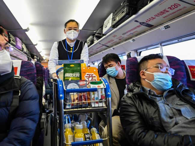 En un tren repleto Wang Chunfeng se siente dichoso. Es uno de los millones de chinos que buscan recuperar el tiempo perdido y viajan para festejar este Año Nuevo Lunar, tras años en que las restricciones de la pandemia los obligó a estar separados de su familia.