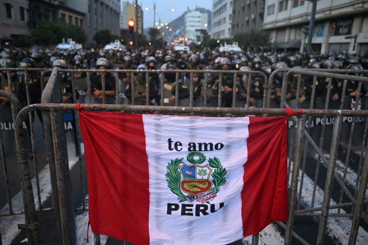Fuertes contingentes policiales y tanquetas cortan el paso de varias calles en el centro de la ciudad. Impiden acercarse al Congreso y al Palacio de Gobierno. La represión ha sido constante y dura en cada una de las movilizaciones. En Lima y en el interior del país. Desde que comenzaron, las protestas han dejado 58 muertos. De ellos, 47 asesinados por las fuerzas de seguridad: 46 por disparos de la policía y el ejército, y uno por una bomba lacrimógena que un policía le disparó a la cabeza desde pocos metros. Esta última muerte ocurrió el sábado en Lima, la primera en la capital. El gobierno, la mayoría derechista del Congreso y los medios hegemónicos aplauden la represión y criminalizan las protestas. Al cierre de esta nota, la policía comenzaba a lanzar bombas lacrimógenas contra manifestantes.