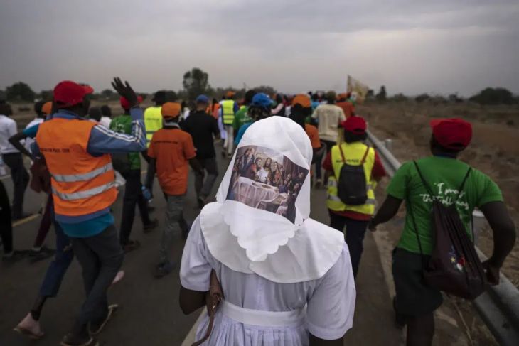 Un grupo de unos 80 católicos de la ciudad de Rumbek, en el centro del país, que durante nueve días recorrieron a pie un estimado de 300 kilómetros (unas 190 millas), llegaron a Yuba entre vítores el jueves. Los peregrinos estaban doloridos, cansados y tenían ampollas, pero indicaron que esperaban asistir a la gran misa que oficiará el pontífice el domingo y llevar sus bendiciones de regreso a sus casas y familias.