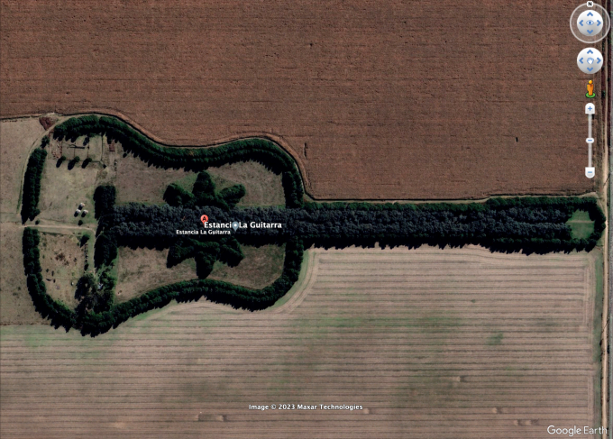 Con cipreses y eucaliptos, Pedro formó una gigantesca guitarra que incluso en la actualidad puede ser apreciada gracias a la herramienta digital Google Earth.
