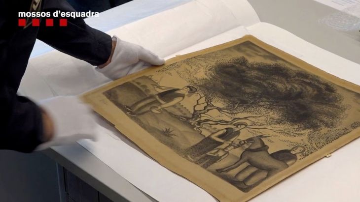 Los Mossos d'Esquadra informaron que habían detenido a tres hermanos -de 50, 53 y 55 años- e incautaron los dos dibujos realizados por Dalí en 1922 para ilustrar un libro titulado Les Gràcies de L'Empordà a petición de su autor, Pere Coromines.