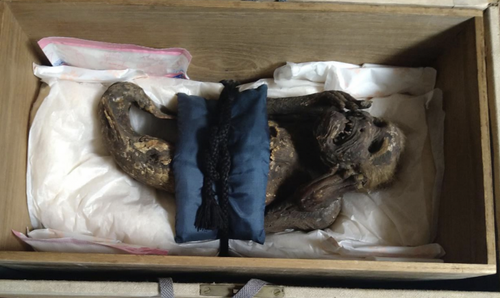 Una extraña momia encontrada en una red de pesca en el siglo XIX en Japón ha sido venerada durante décadas en el templo Enjuin, pues se consideraba una reliquia sagrada, y aunque se pensaba que era una combinación de mono y pez, científicos ya pudieron revelar de qué está hecha la criatura.