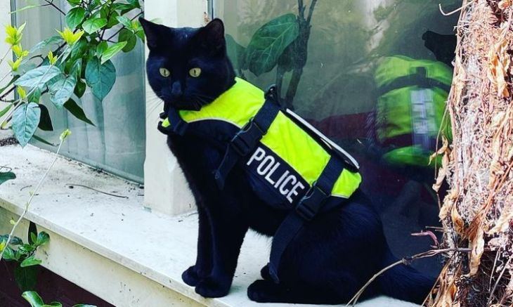 Desde hace varios meses, las calles de Ámsterdam son más seguras o al menos más agradables gracias a la presencia de un particular policía: un gato negro vestido con un chaleco brillante que patrulla por el vecindario.