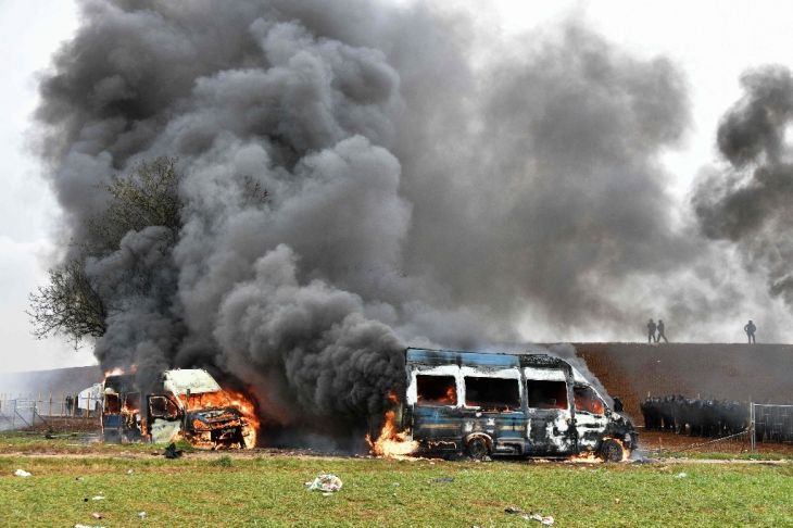 A media jornada, cerca de las obras, estallaron choques entre activistas radicales que usaron petardos y cócteles Molotov, según la gendarmería, que replicó con gases lacrimógenos y cañones de agua. Según un primer balance oficial, los altercados dejaron numerosos heridos en ambos bandos.