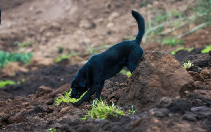 En medio de la desesperación, un perro labrador llamó la atención de los equipos de rescate. Inquieto y sollozando, el animal no paraba de escarbar la tierra, por lo que los socorristas decidieron seguirlo y chequear el lugar en el que el can escarbaba. Sin embargo, no lograron encontrar nada.
