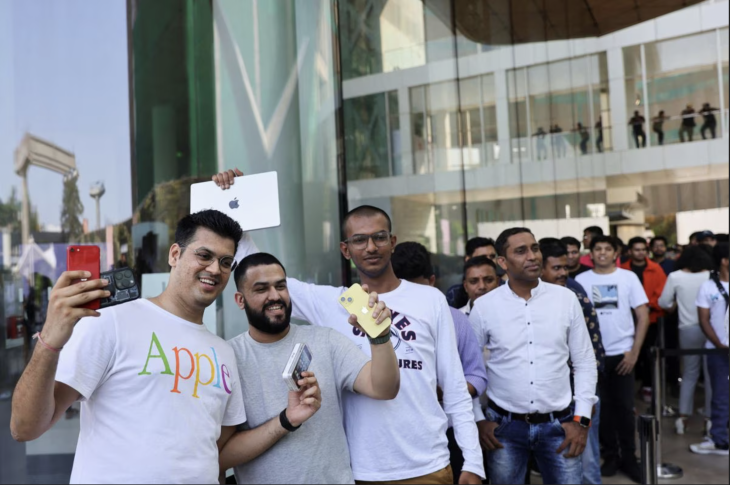 Algunos hicieron cola afuera desde la noche anterior para tener en sus manos los productos de Apple, a pesar de que están disponibles en línea en India.